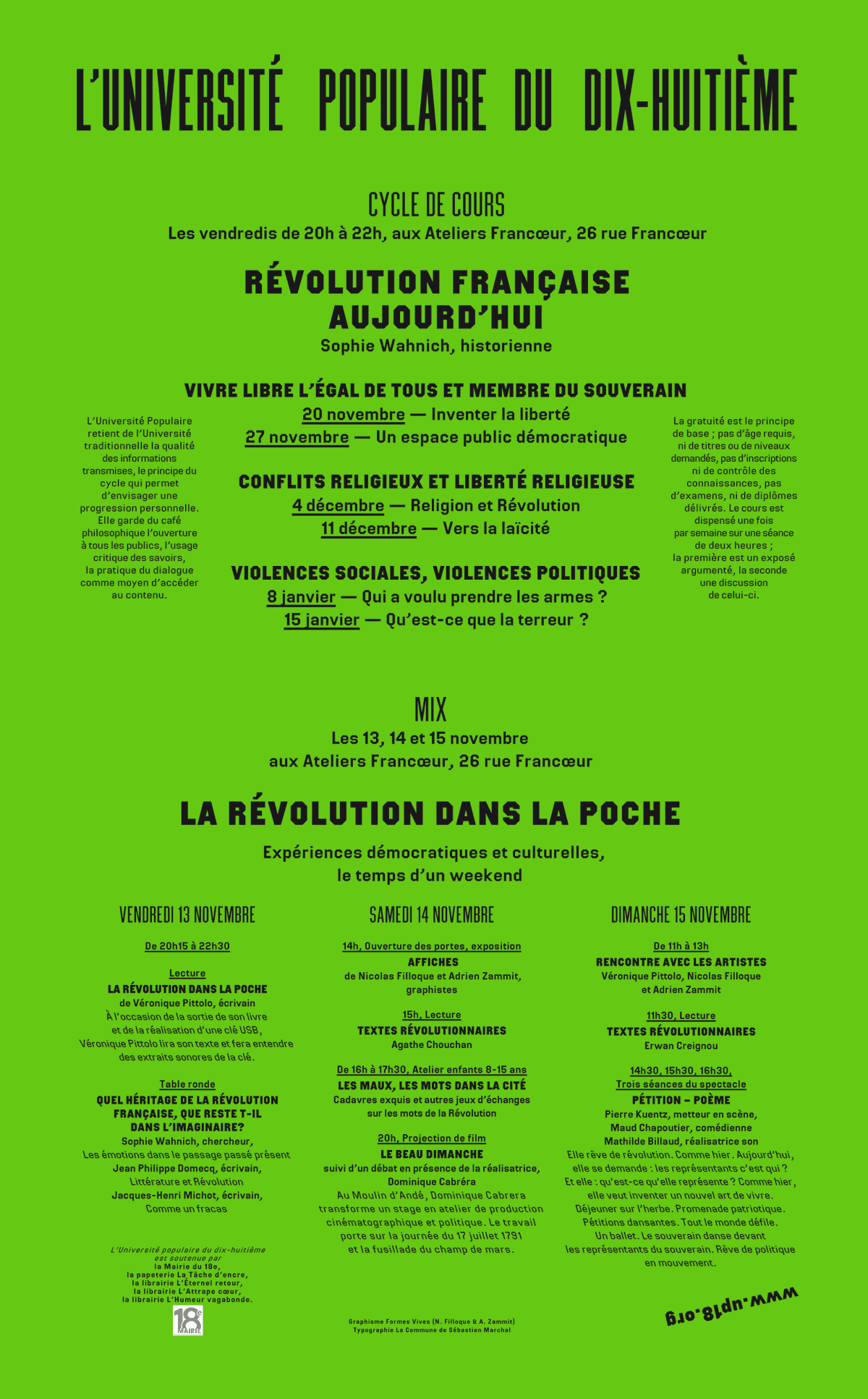 Premier cycle de l'université populaire du XVIIIeme consacré à la Révolution française et à son actualité. Par Sophie Wahnich, historienne.